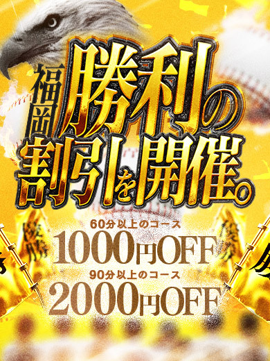 SoftBank Hawks日本一!! 優勝割引開催!! 60分以上のコース フリー・指名問わず全員対象!! 60分コース ⇒...